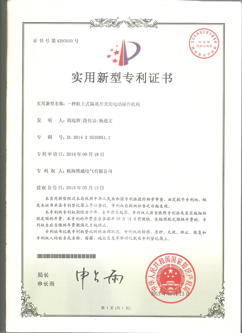 (實(shí)用新型)一種柱上式隔離開(kāi)關(guān)的電動(dòng)操作機(jī)構(gòu)