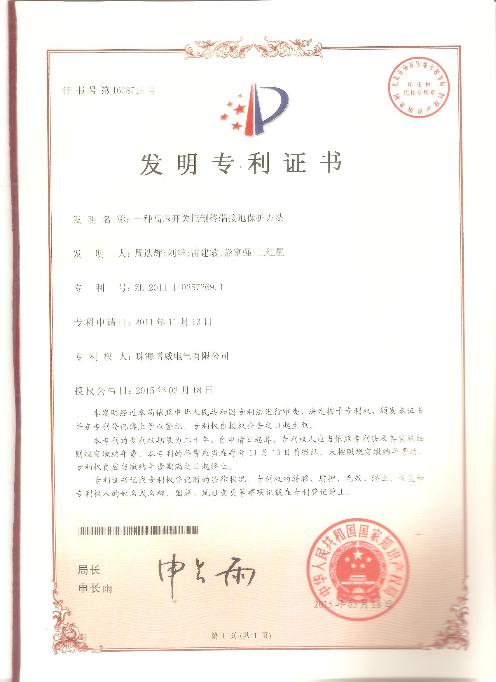 (發(fā)明)一種高壓開關控制終端接地保護方法