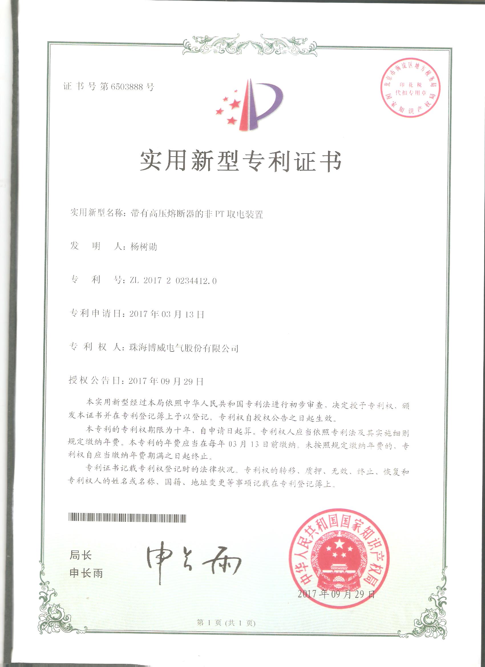 (實用新型)帶有高壓熔斷器的非PT取電裝置