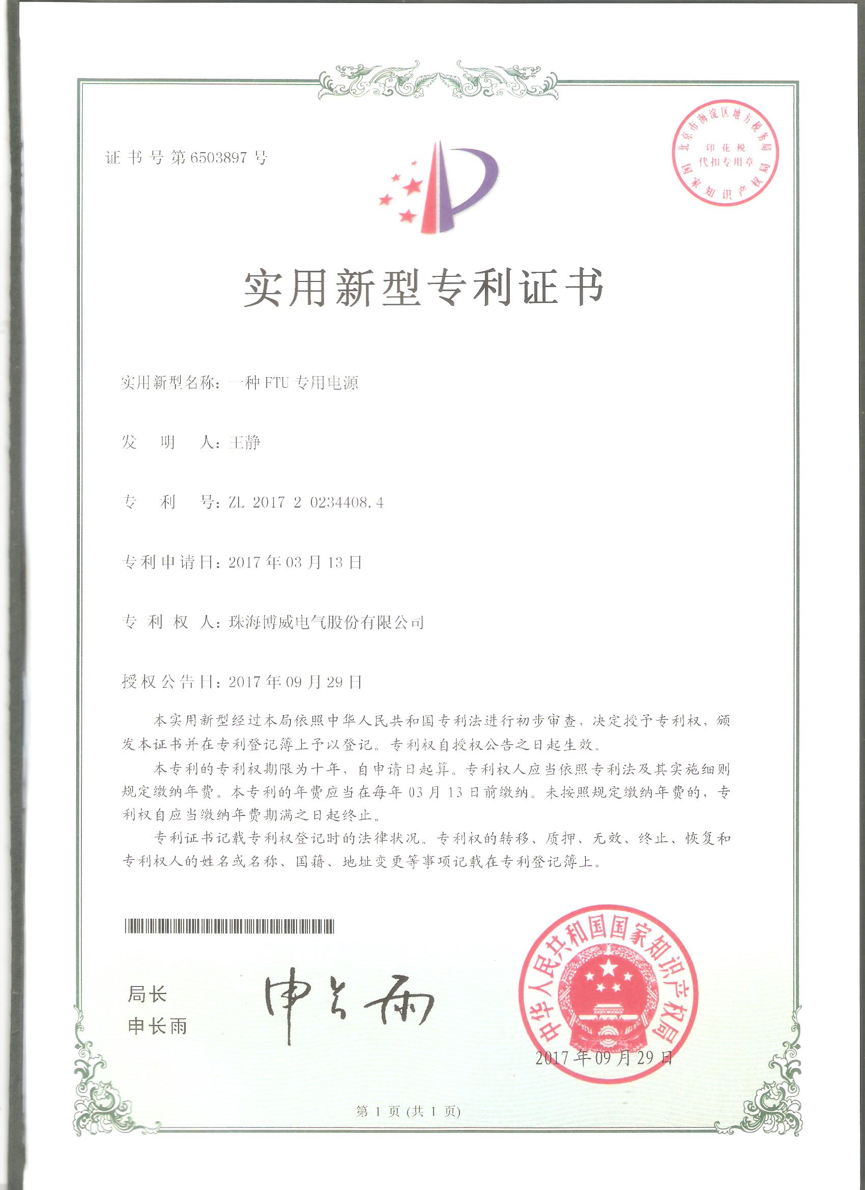 (實用新型)一種FTU專用電源